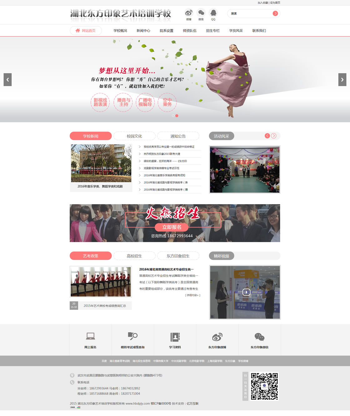 湖北東方印象藝術培訓學校是經過教育局批準,專門從事傳媒,舞蹈,音樂,美術等藝考培訓的學校。一直以來以卓越教學為辦學宗旨,以培養杰出人才為教育目的,先后與全國九大音樂學院,七大藝術院校以及國內多所已開設藝術專業的知名高校有著密切而愉快的合作關系。