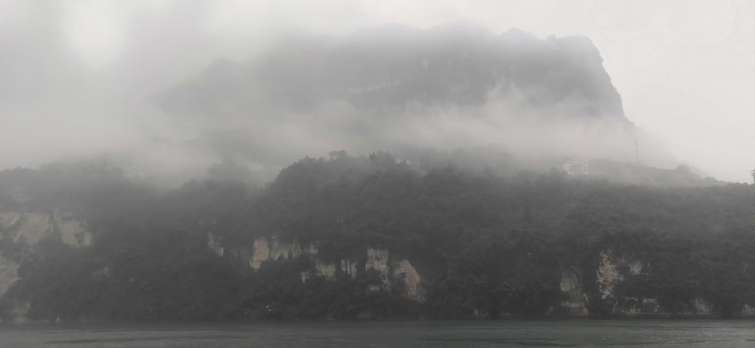 當(dāng)天清晨我們從武昌站出發(fā),兩個小時便到了宜昌東站,接著乘坐旅游巴士前往胡金灘碼頭,一路上途經(jīng)西陵峽,透過車窗提前感受到了大自然的壯觀。臨近景區(qū)的那條上山路讓我想起了恩施大峽谷,沿山路上也是有很多土家餐館,不過山路沒有大峽谷崎嶇。很快我們就進(jìn)入了三峽人家風(fēng)景區(qū),它位于長江三峽西陵峽段,地處三峽大壩和葛洲壩之間,橫跨燈影峽兩岸,以其“一肩挑兩壩,一江攜兩溪”的獨(dú)特地理位置優(yōu)勢,成為了長江三峽黃金旅游線上的一顆璀璨明珠。大家滿懷期待的心情登上渡船,終于真實地體會到了三峽人家的雄渾之美,站在渡船二樓,清風(fēng)撲面而來,讓人心曠神怡。雖然那天烏云密布,陰霧迷漫,但多了一絲蒼涼之美、陰柔之美。