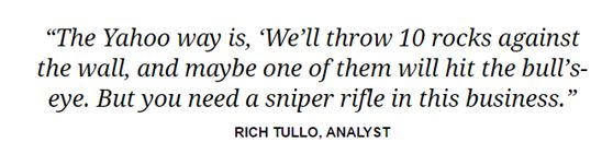 雅虎的改革就像是隨機拋石頭,也許總有一塊能正中靶心。然而在商業(yè)中,它需要的是精準狙擊槍一樣的改革。