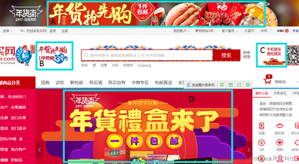 所謂站內(nèi)廣告是指在網(wǎng)站首頁或者其它頁面,在顯眼的位置為某些商品/活動做站內(nèi)推廣的一種形式。比較常見的就是一些banner圖。如圖1所示: