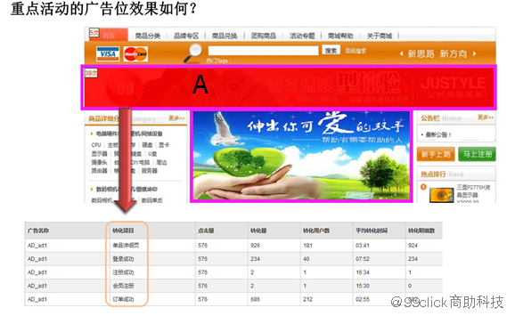 2、其次,通過分析這些數(shù)據(jù)為優(yōu)化站內(nèi)廣告位創(chuàng)意、展現(xiàn)位置提供數(shù)據(jù)支撐。如圖3所示: