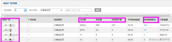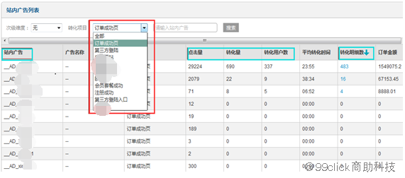(2)A廣告位在實現(xiàn)的轉(zhuǎn)化項目(如注冊成功、訂單成功等),所帶來的點擊量、轉(zhuǎn)化量、轉(zhuǎn)化明細等數(shù)據(jù);